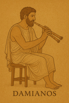 Damianos, soms Ammonios genoemd, was een professionele aulos-speler. Zijn naam verschijnt vooral op inscripties en prijslijsten van muziekwedstrijden, waar hij wordt genoemd als winnaar of deelnemer aan concoursen in Griekse steden en festivals. Hij illustreert het bestaan van beroemde uitvoerende musici in de Romeinse periode, een groep die zelden bij naam wordt genoemd.