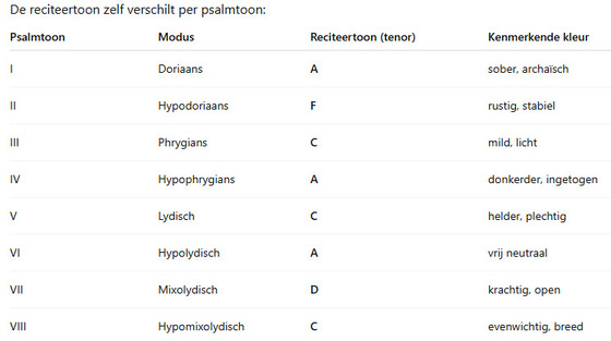 Vergelijkbaar, maar iets complexer, zijn de psalmtonen [2,3,4]. Voor elk van de 2 keer 4 (= 8) kerkmodi bestaat een psalmtoon, plus een negende, de Tonus peregrinus. Psalmtonen en tonen voor lezingen uit epistels en de Schrift behoren tot de oudste gezangen van de liturgie, net als de meer geornamenteerde tonen van de prefatie (voorrede) en het Onze Vader.